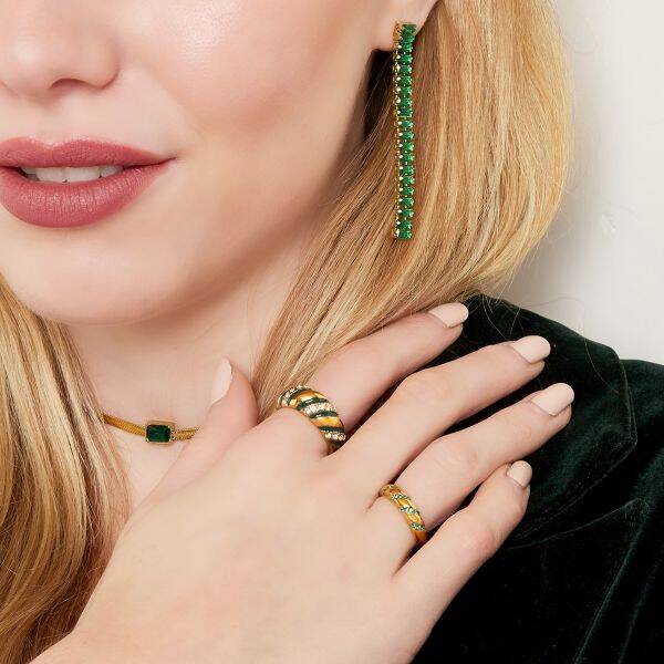 Kleur: Goud, rozeMateriaal: Stainless Steel, Enamel, Zircon Gewicht: 5g